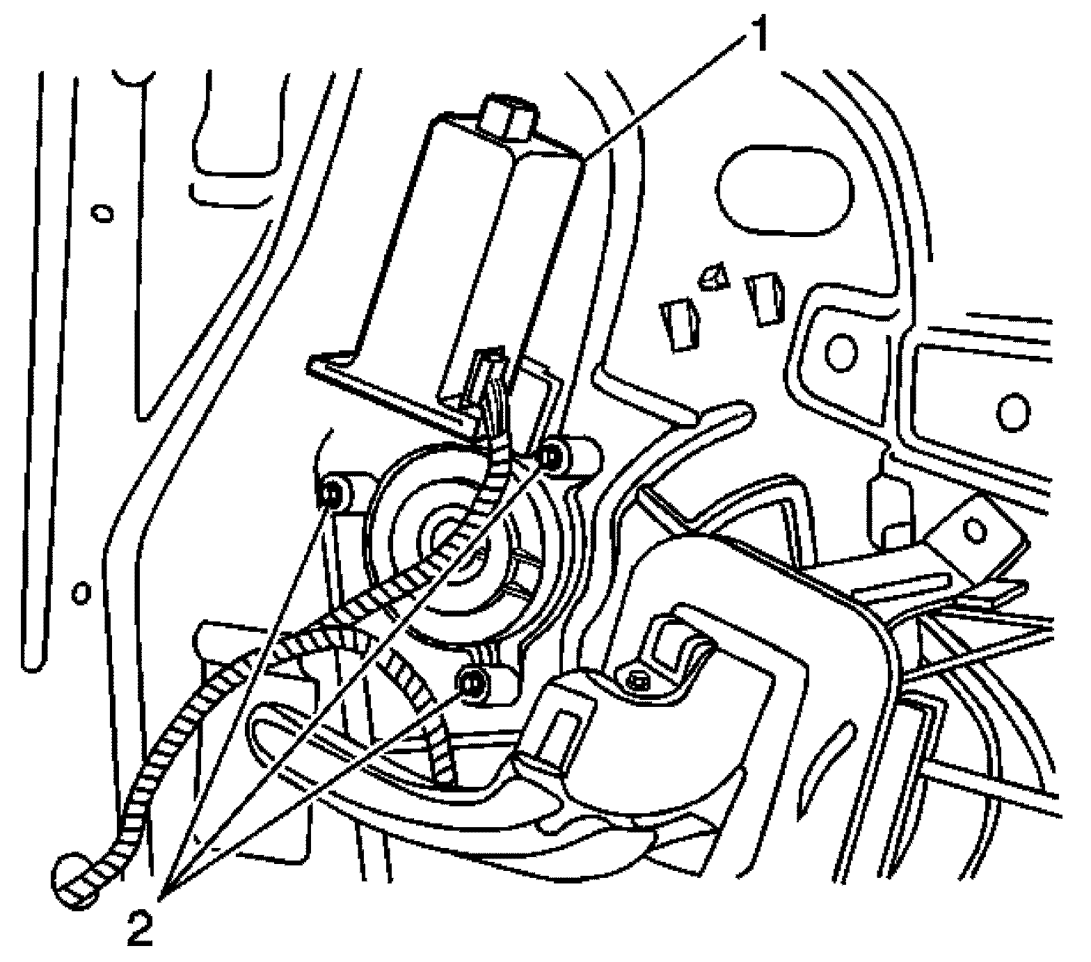 Important: Do not force the power window motor into position. Ensure that the gear on the motor and the gear on the regulator mesh properly. If the motor does not seat onto the module assembly, then manually move the window up or down slightly until the motor fits tightly against the window module.