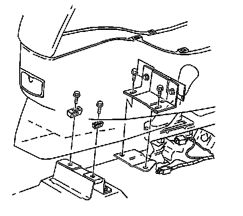 7. Remove the bolts from the front floor console mounting bracket at the rear of the transaxle shift lever.