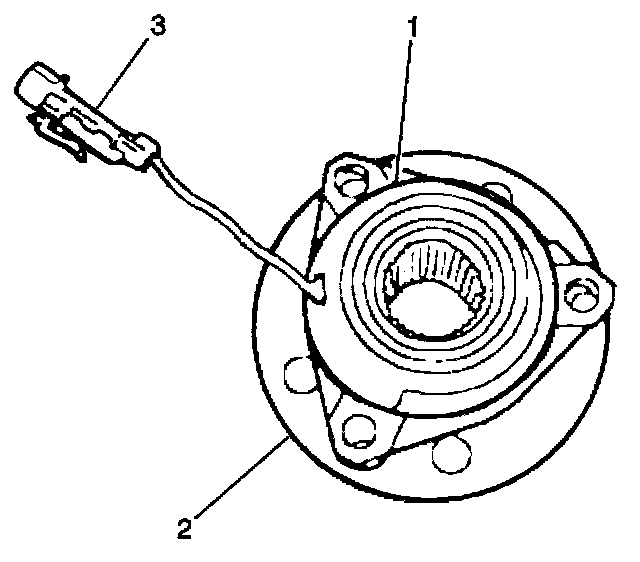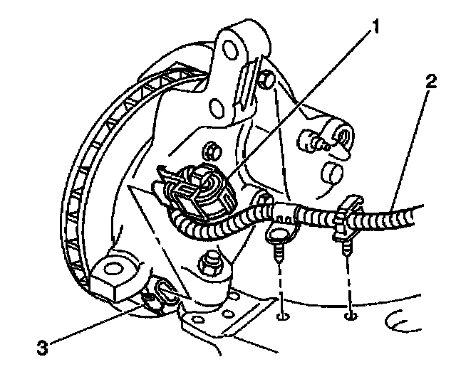 Removal ProcedureImportant: The front wheel speed sensors and rings are integral with the hub and bearing assemblies. If a speed sensor or a ring needs replacement, replace the entire hub and bearing assembly. Do not service the harness pigtail individually because the harness pigtail is part of the sensor. Refer to Front Wheel Drive Shaft Bearing Replacement in Transmission and Drivetrain.
