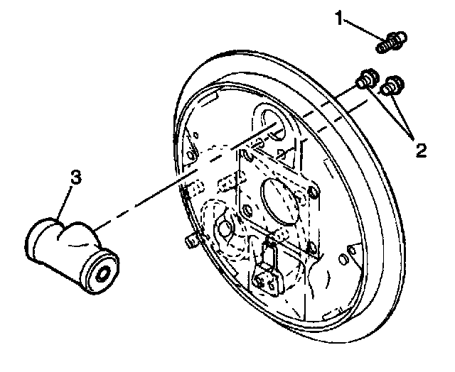 4. Install the wheel cylinder (3). Refer to Wheel Cylinder Replacement.