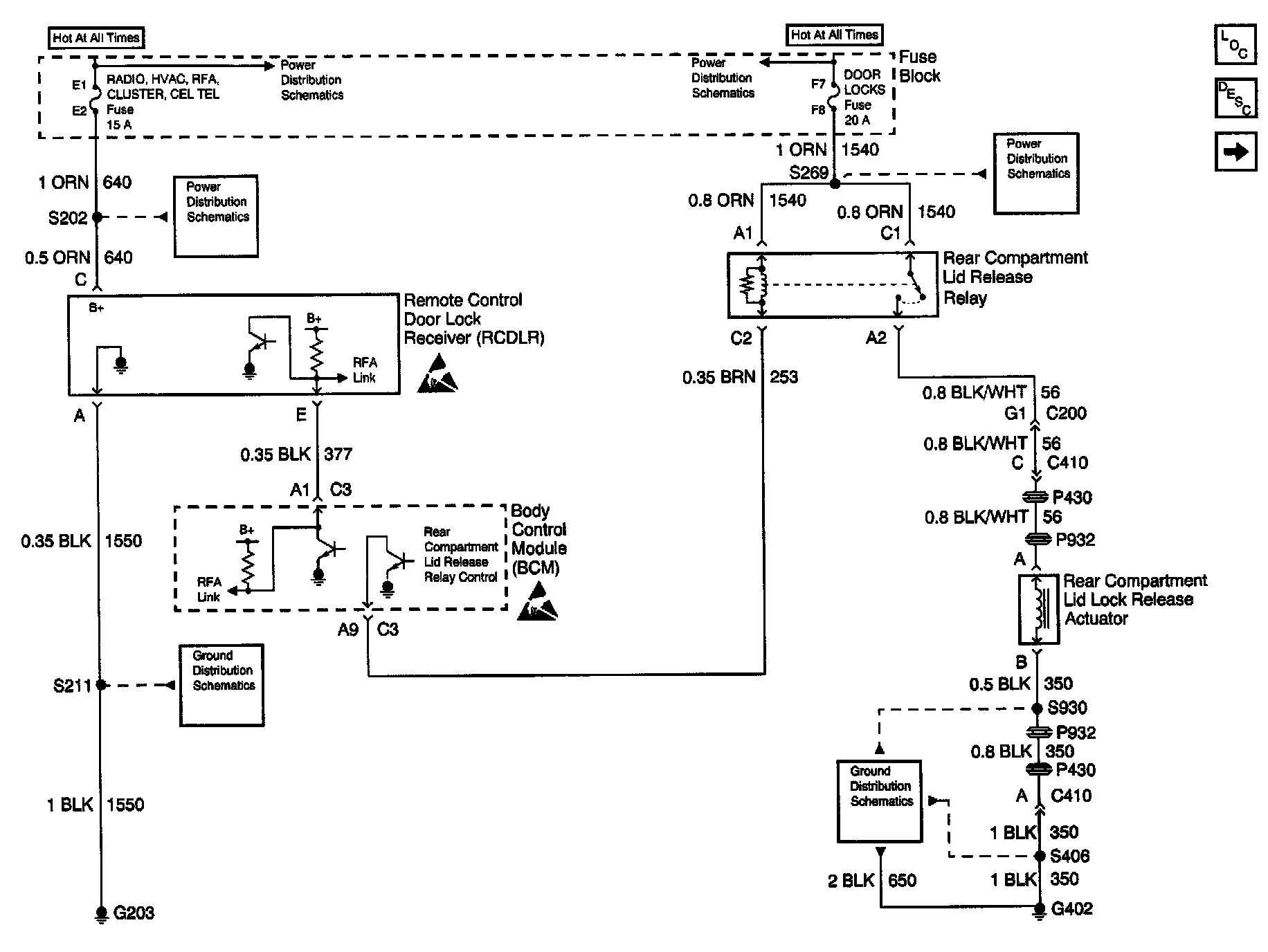 Keyless Entry Schematics : Power, Ground, Rear Compartment Lid Release Relay And Rear Compartment Lid Lock Release Actuator: