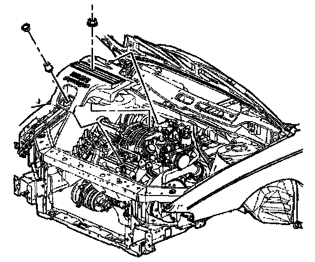 2. Insert the tab of the fuel injector sight shield under the engine bracket.