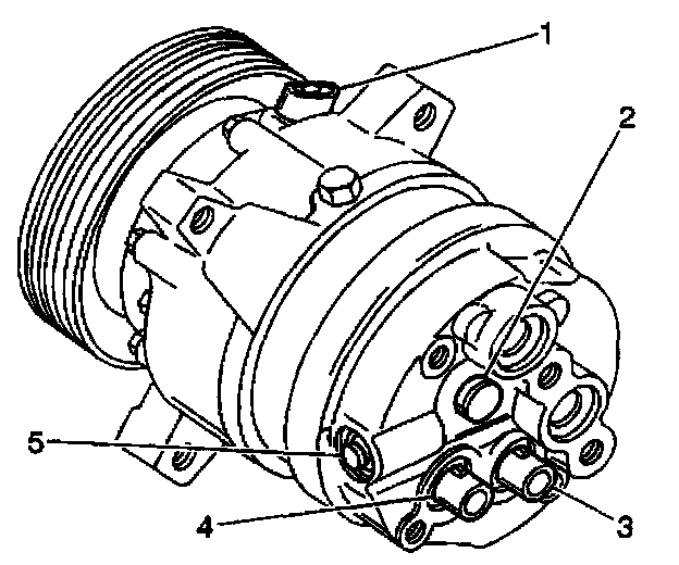 2. Disconnect the electrical connector from the switch (3 or 4) in the rear head of the compressor.