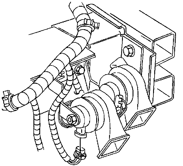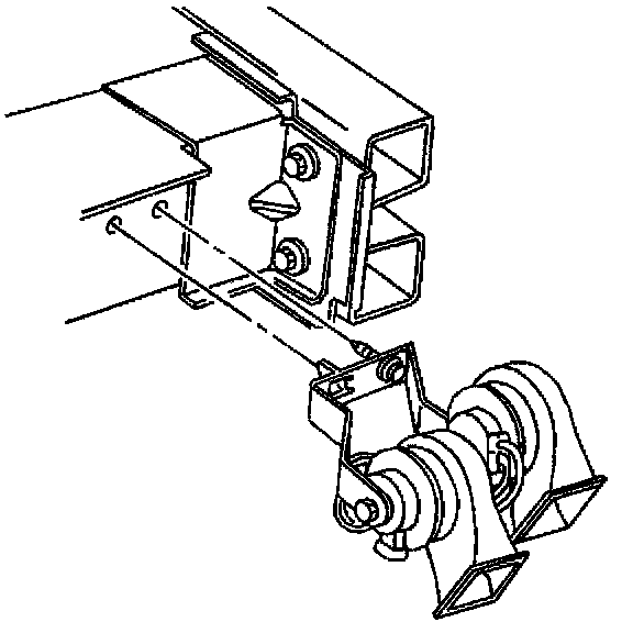 1. Position the horn assembly to the frame rail extension; insert the horn anti-rotation tab into the slot on the frame rail.