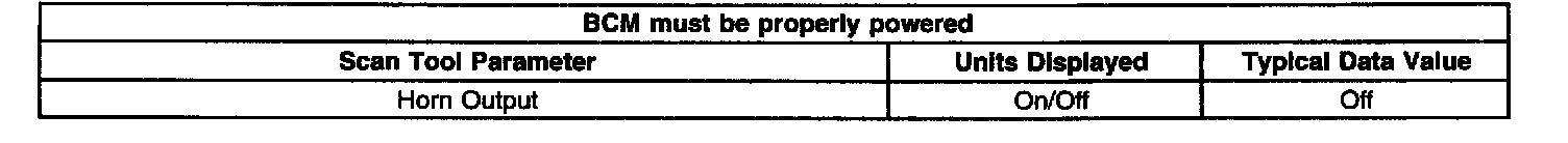 The Scan Tool Displays On/Off. The Horn Output is displays as Off