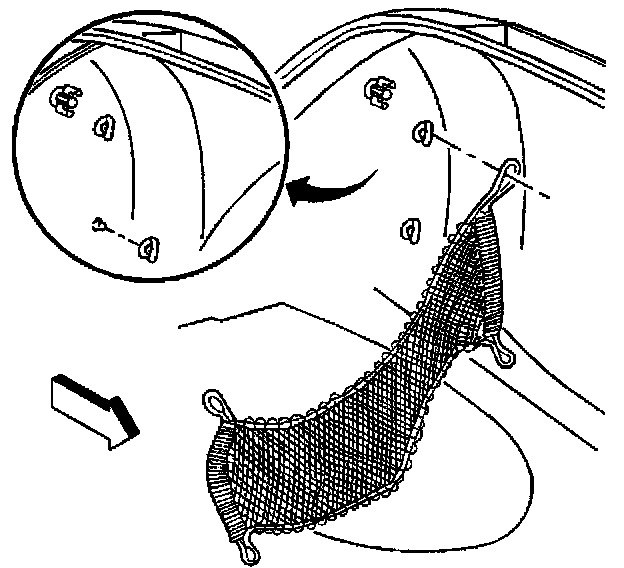7. Install the rear compartment convenience net, it equipped, to the plastic wingnut retainers.