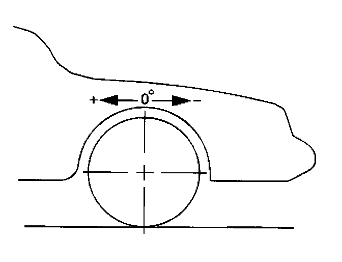 Caster is the tilting of the uppermost point of the steering axis, either forward or backward from the vertical, when viewed from the side of the vehicle. A backward tilt at the top is positive (+) and a forward tilt is negative (-). Caster influences the directional control of the steering, but caster does not affect tire wear. One wheel with more positive caster than the other wheel causes that wheel to pull toward the center of the vehicle. The vehicle will move or lead toward that side with the least amount of positive caster.