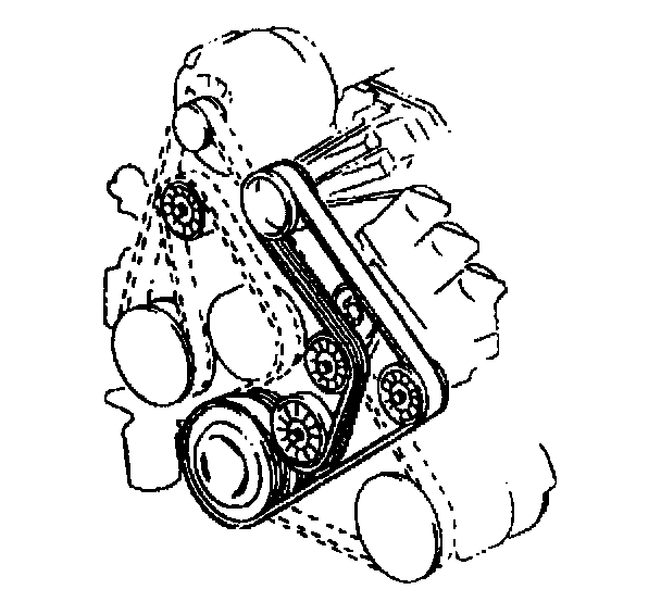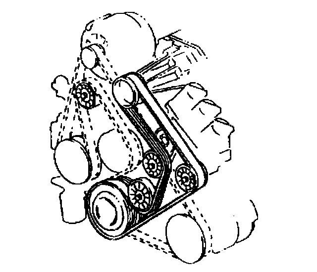 Removal ProcedureThe supercharged 3800 engine utilizes two drive belts. The outer drive belt drives the supercharger. The inner drive belt drives the following components: