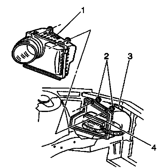 4. Carefully remove the air intake duct from the throttle body and air cleaner housing (1).