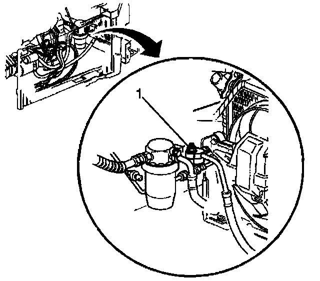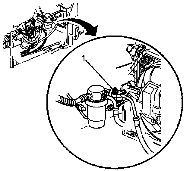 5. Remove the compressor hose nut (1) at the condenser.