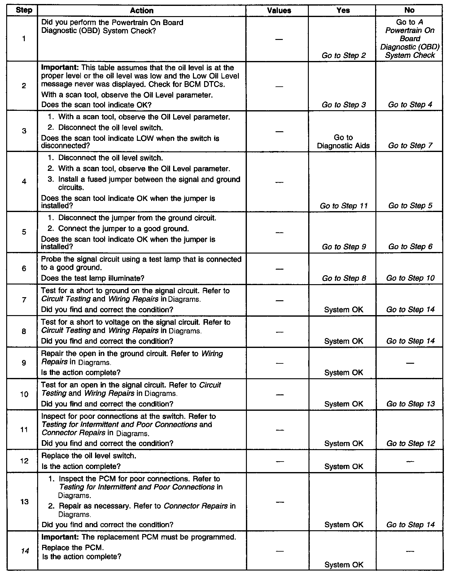 ^ Poor connection at the PCM or oil level sensor - Inspect harness connectors for: