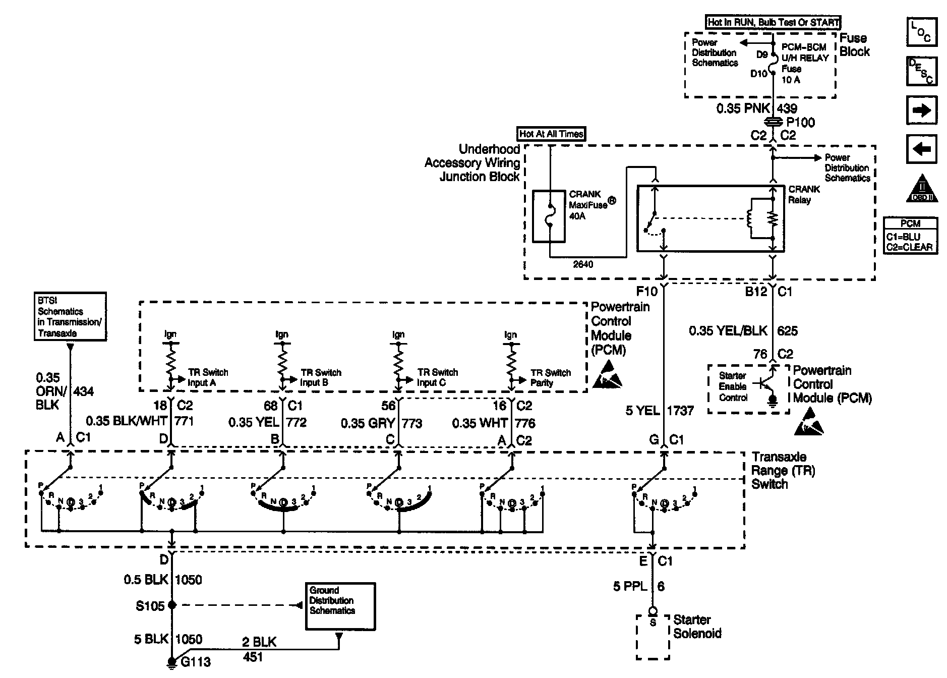Engine Controls Schematics: Transaxle Range Switch Inputs And Starter Solenoid: