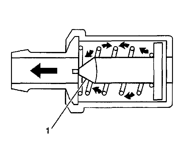The primary control is through the crankcase ventilation valve (1) which meters the flow at a rate depending on Inlet vacuum. To maintain idle quality, the crankcase ventilation valve restricts the flow when Inlet vacuum is high. If abnormal operating conditions arise, the system is designed to allow excessive amounts of blow-by gases to back flow through the crankcase vent Into the throttle body to be consumed by normal combustion.