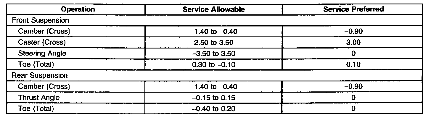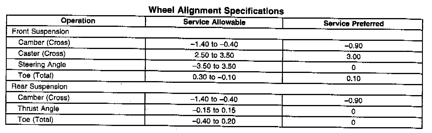 Wheel Alignment Specifications