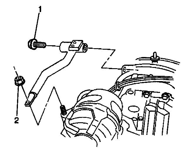 3. Remove the generator rear brace nut (2).