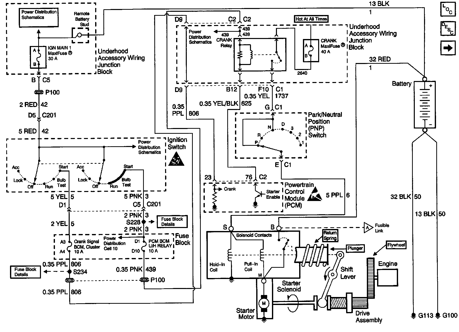 Starting And Charging Schematics : Power/Ground Distribution, Starting: