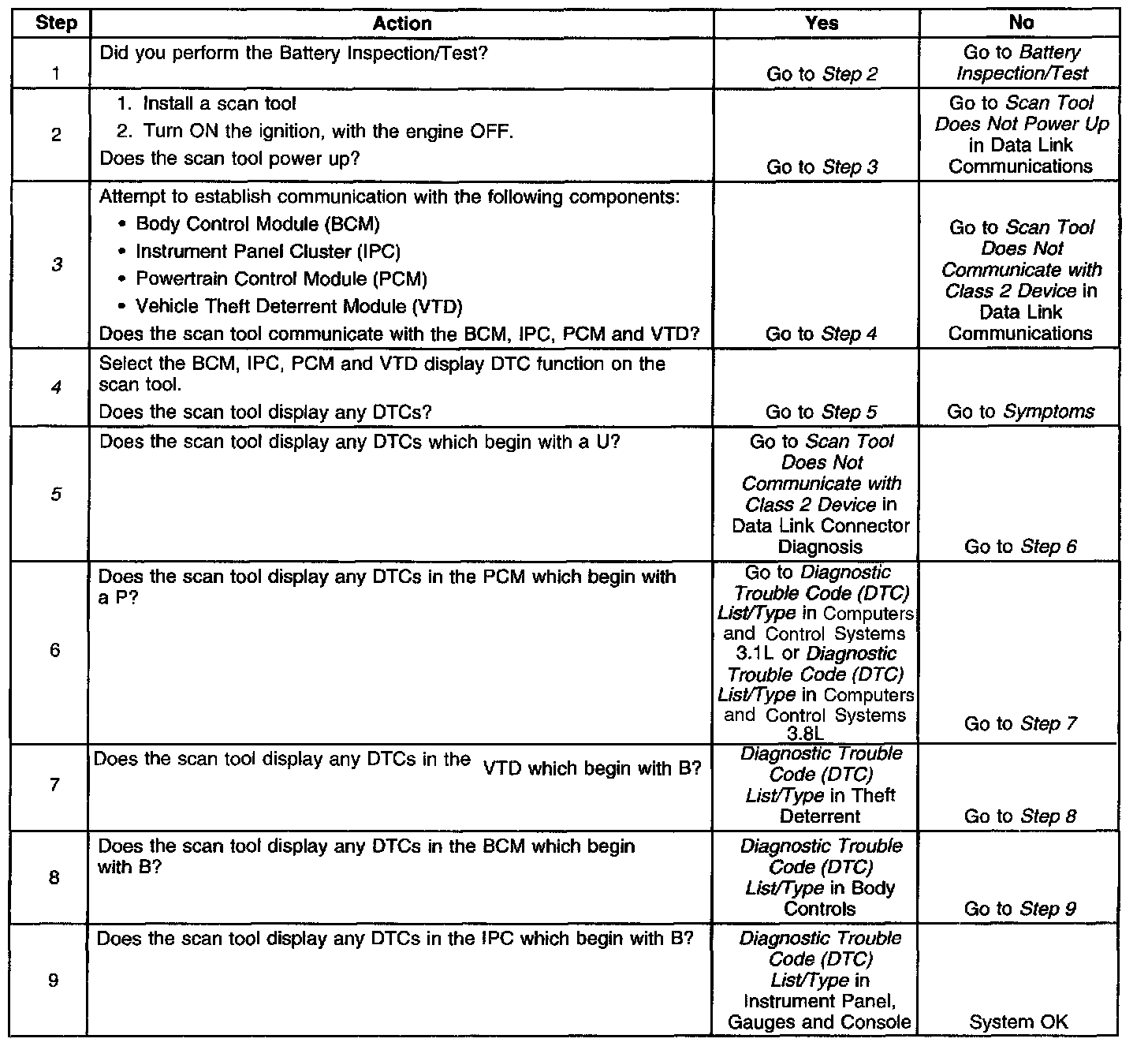 3. Lack of communication may be due to a partial malfunction of the class 2 serial data circuit or due to a total malfunction of the class 2 serial data circuit. The specified procedure will determine the particular condition.