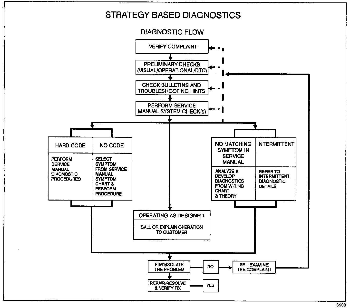 6 - Re-examine the Concern: If a technician cannot successfully find or isolate the concern, a re-evaluation is necessary. Re-verify the concern. The concern could be an intermittent or normal condition.