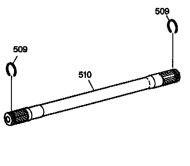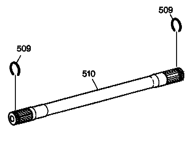1. Install the drive axle retainer ring (509) and the output shaft differential inboard snap ring (512) onto the output shaft (510).