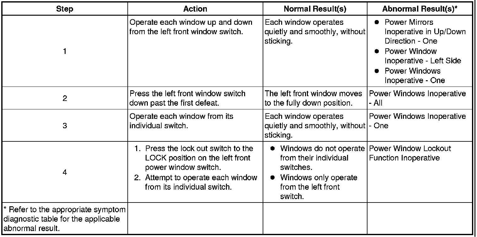Power Windows System Check
