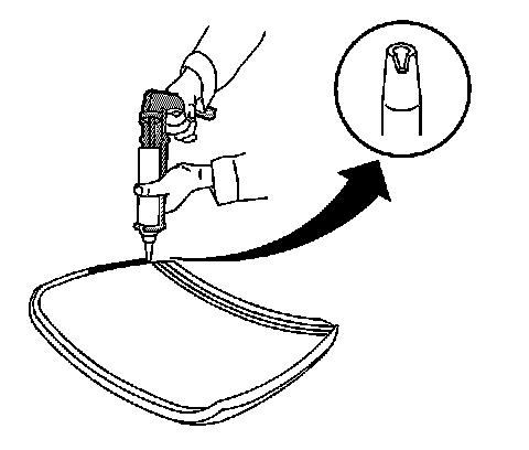 28. When using the extended method, use the edge of the rear window or the inside edge of the reveal molding as a guide for the nozzle in order to apply the urethane adhesive to the inner surface of the rear window.
