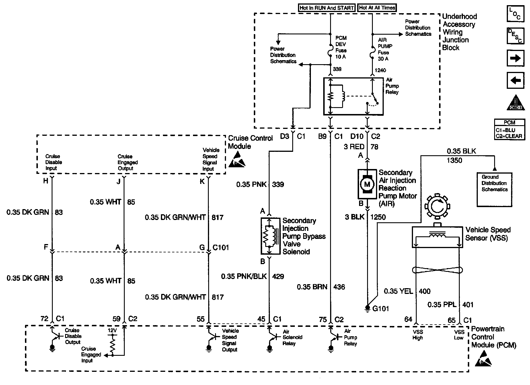Engine Controls Schematics: Cruise Control Module, Secondary AIR Reaction Pump Motor and VSS: