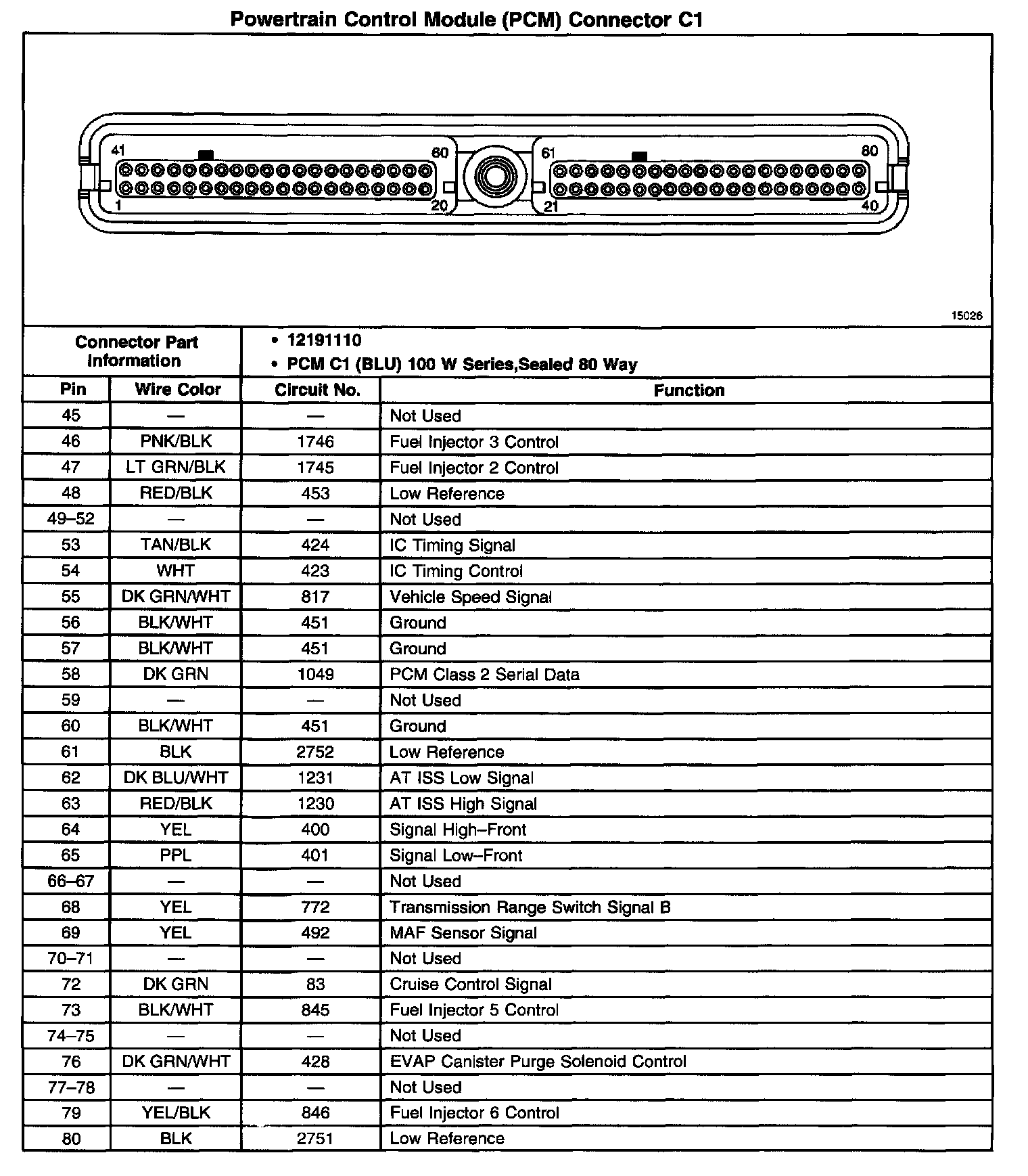 Powertrain Control Module (PCM) Connector C1 (Part 2 Of 2):