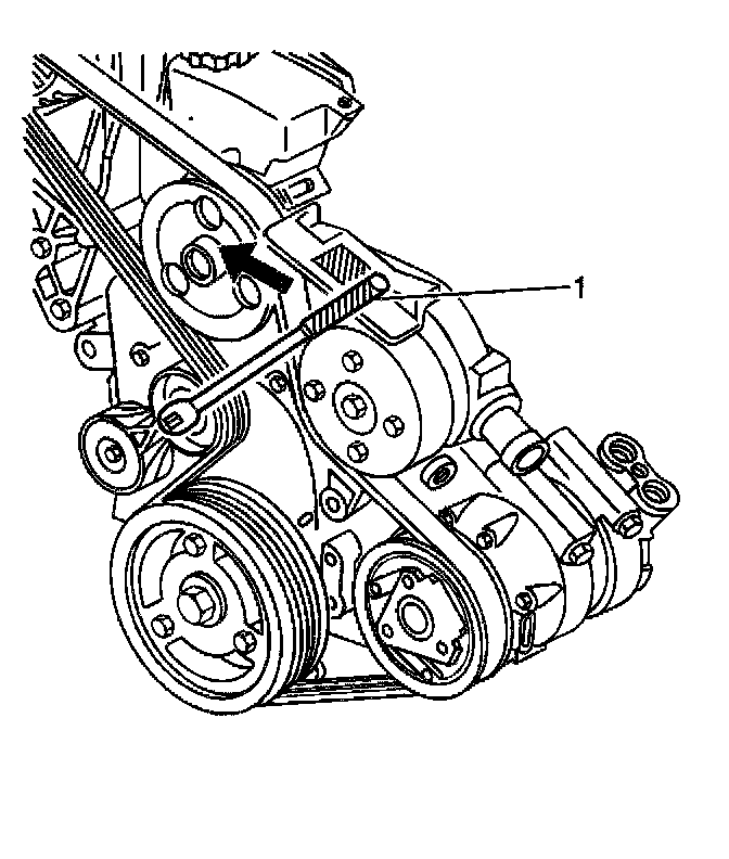 1. Remove the drive belt tension by lifting or rotating the drive belt tensioner off of the drive belt, using a 3/8-inch breaker bar (1).