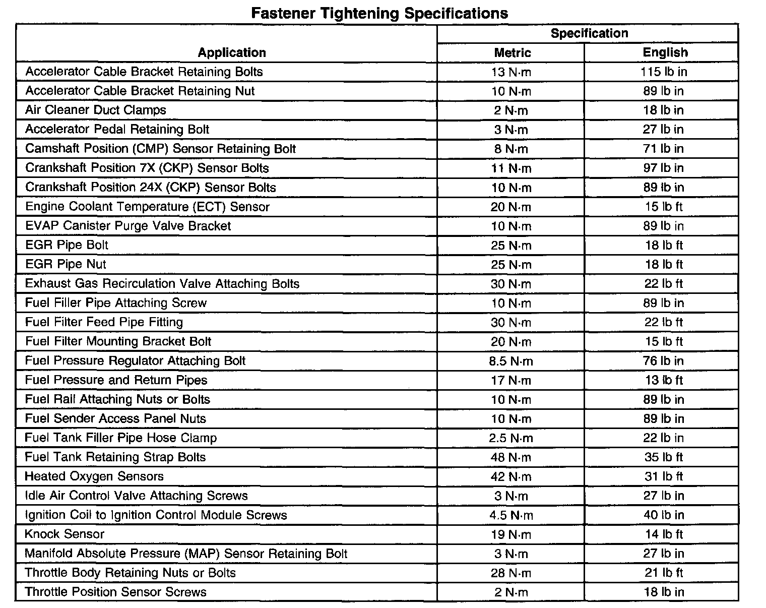 Fastener Tightening Specifications: