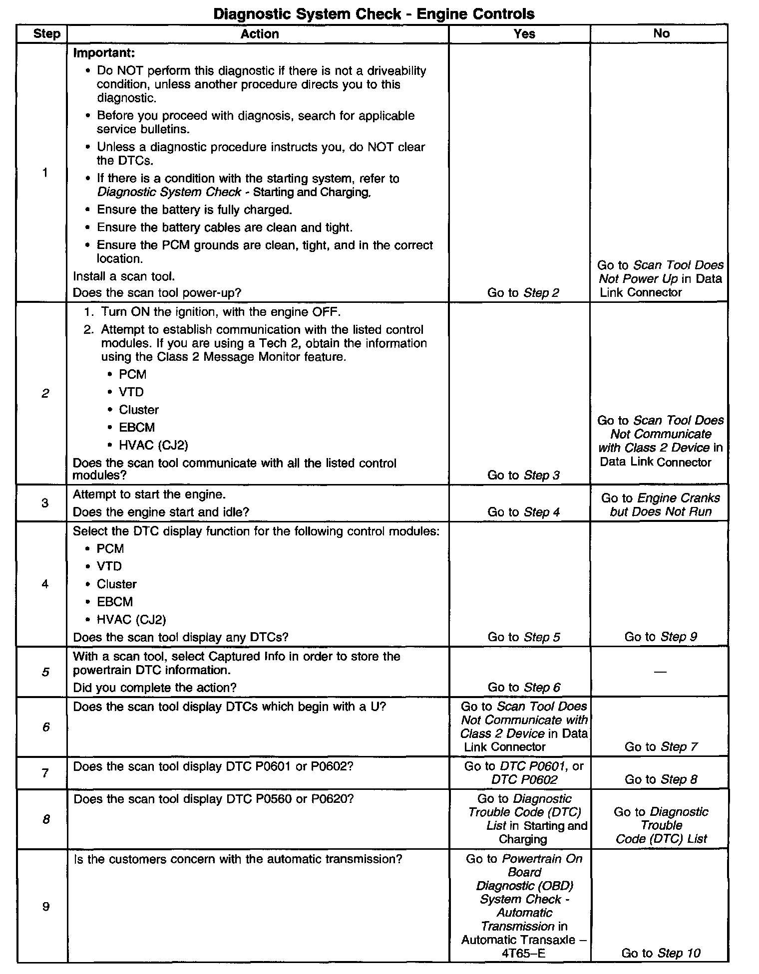 DESCRIPTIONThe Diagnostic System Check is an organized approach to identifying a condition that is created by a malfunction in the powertrain control system. The Diagnostic System Check must be the starting point for any driveability concern. The Diagnostic System Check directs the service technician to the next logical step in order to diagnose the concern. Understanding and correctly using the diagnostic table reduces diagnostic time, and prevents the replacement of good parts.