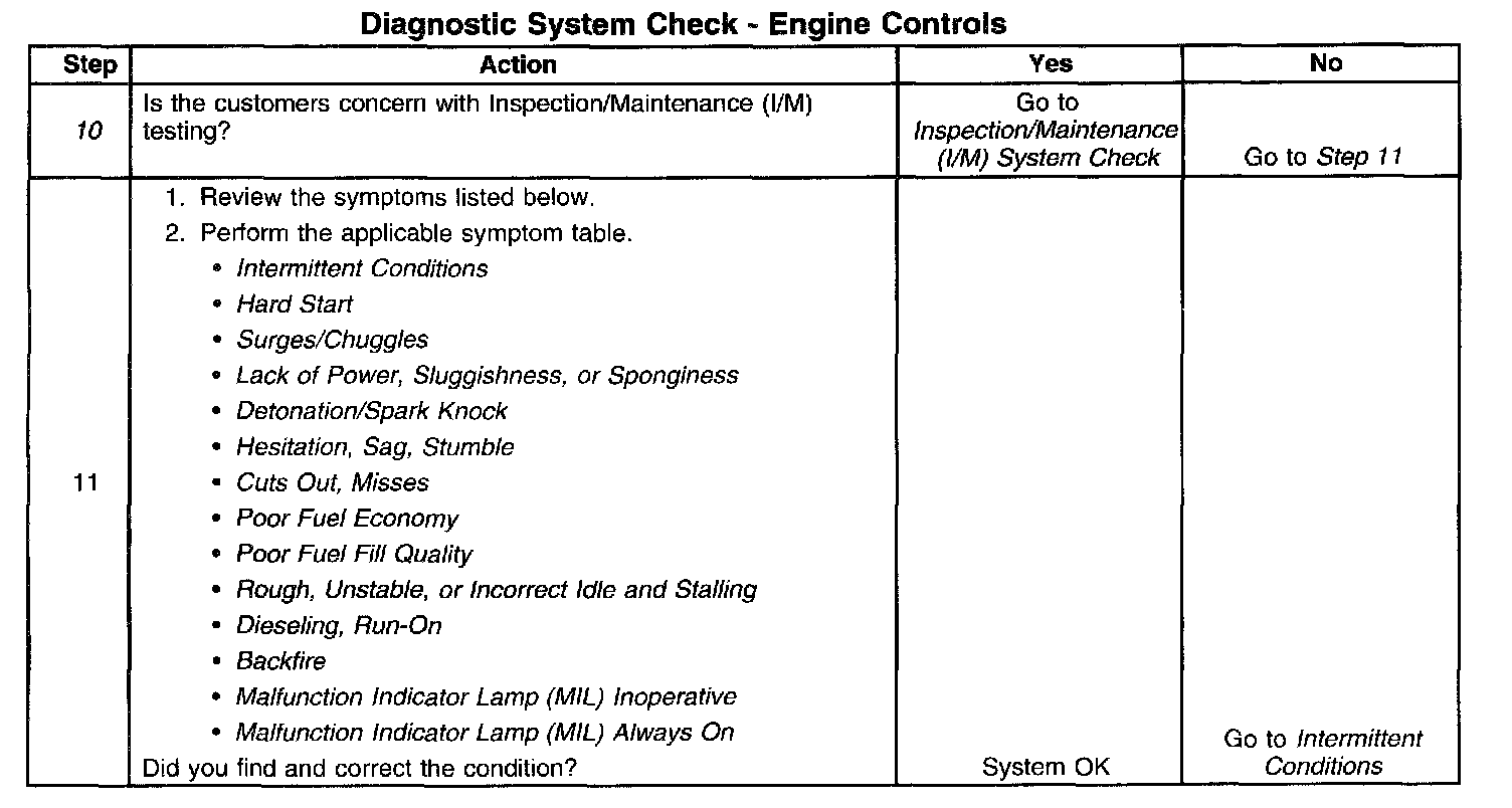 10. This step is for areas that have inspection and maintenance testing procedures for emissions testing. Use this step if the testing facility found one or more I/M system statuses that did not set.