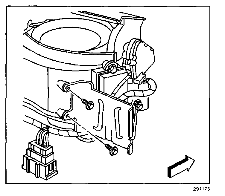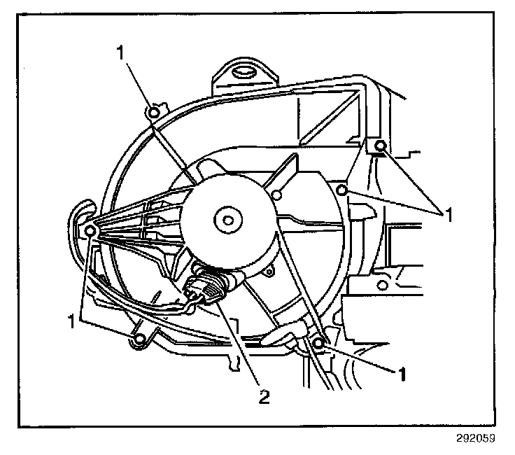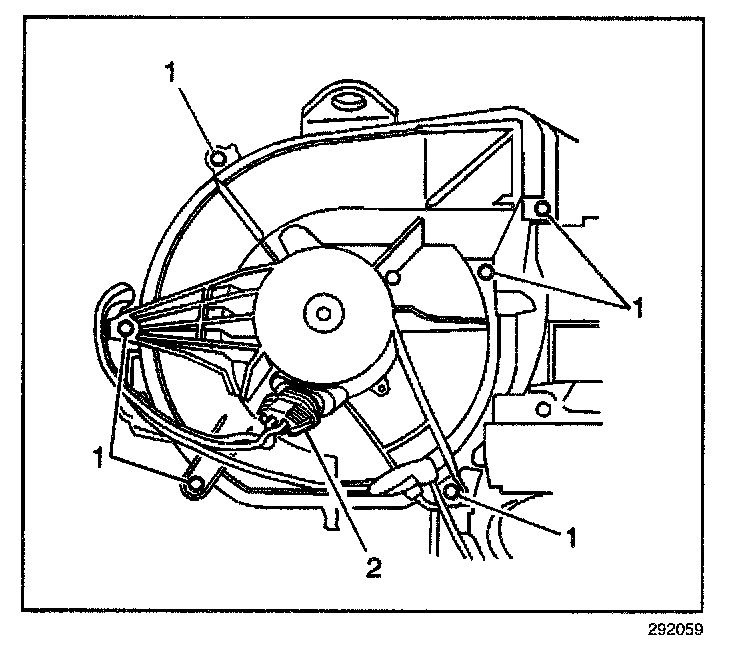 8. Remove the blower motor retaining screws (1).