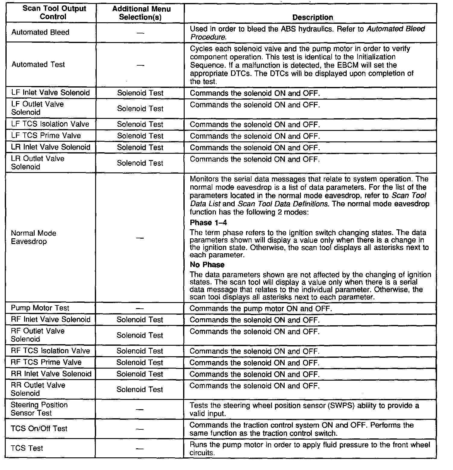Scan Tool Output Controls