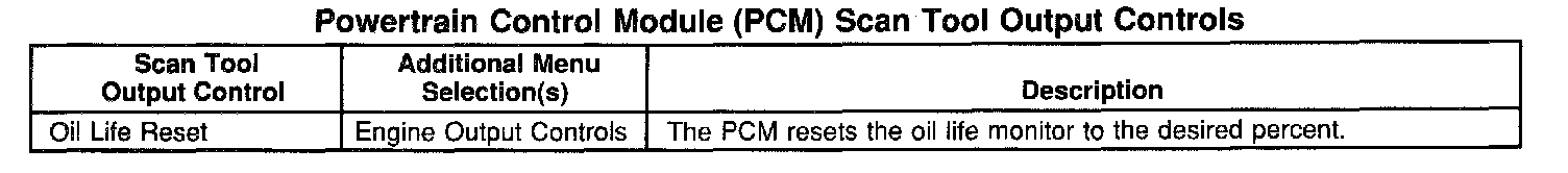 Powertrain Control Module (PCM) Scan Tool Output Controls: