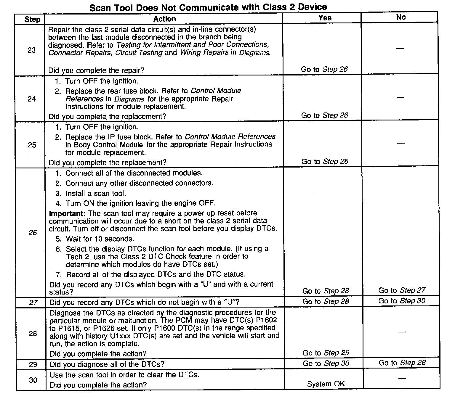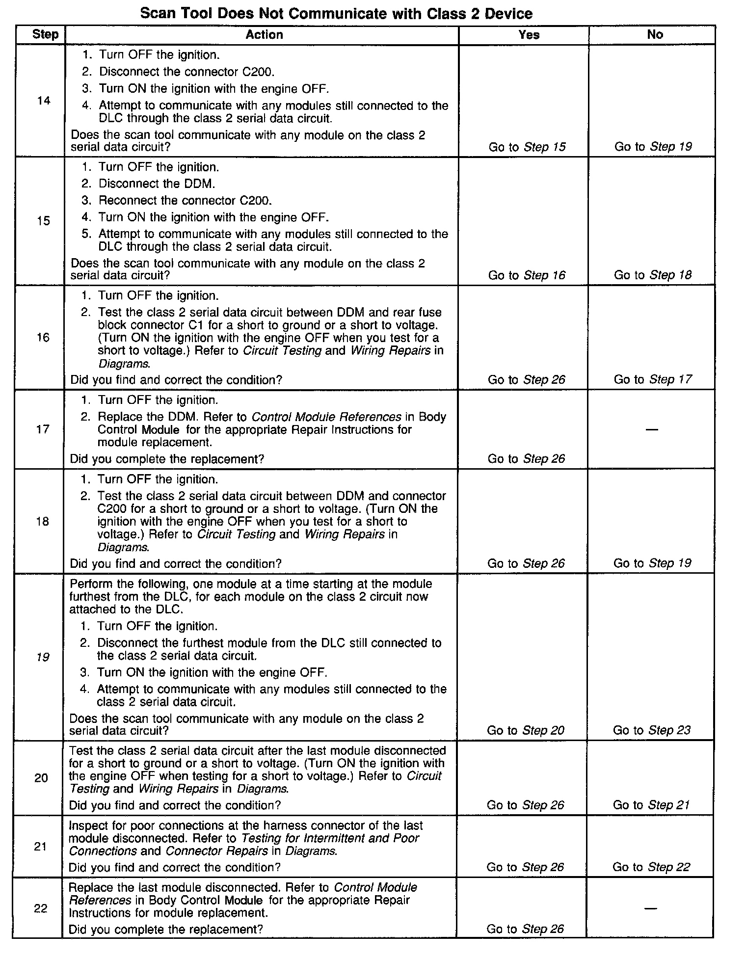 2. A partial malfunction in the class 2 serial data circuit uses a different procedure from a total malfunction of the class 2 serial data circuit.