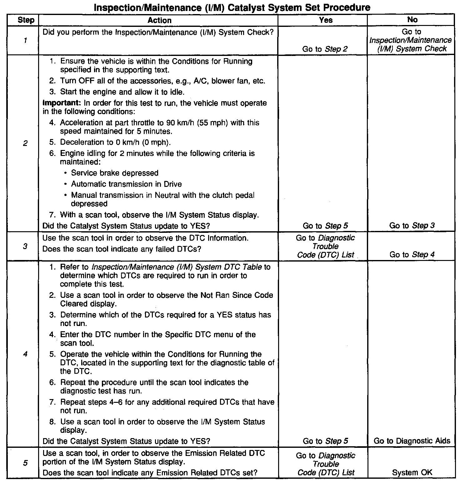 1. Make sure you perform the I/M System Check before performing this test. Failure to do so may result in difficulty updating the status to YES. Inspection/Maintenance (I/M) System Check