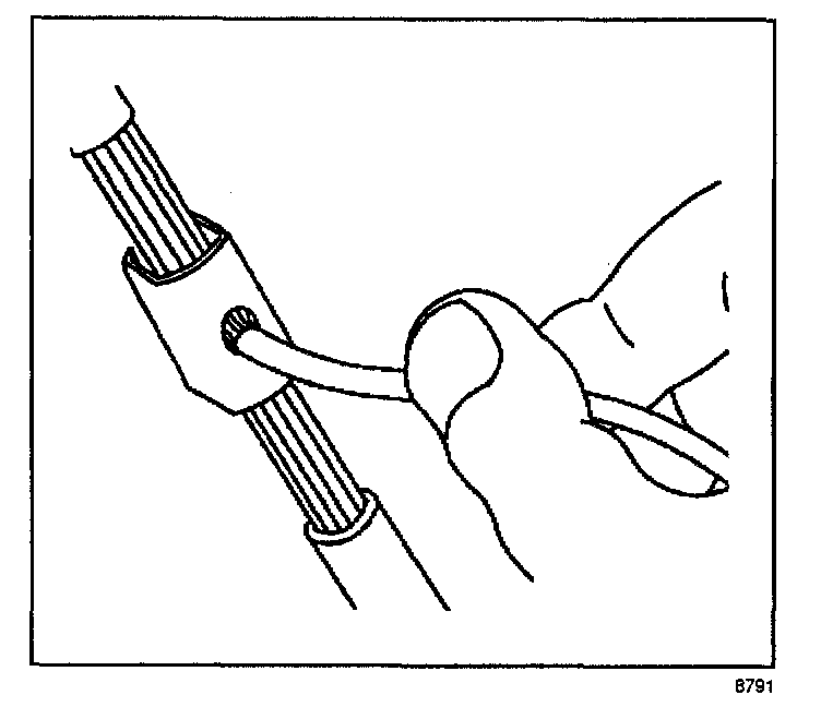 ^ Strip approximately 7.5 mm (5/16 in) of insulation from each wire to be spliced.