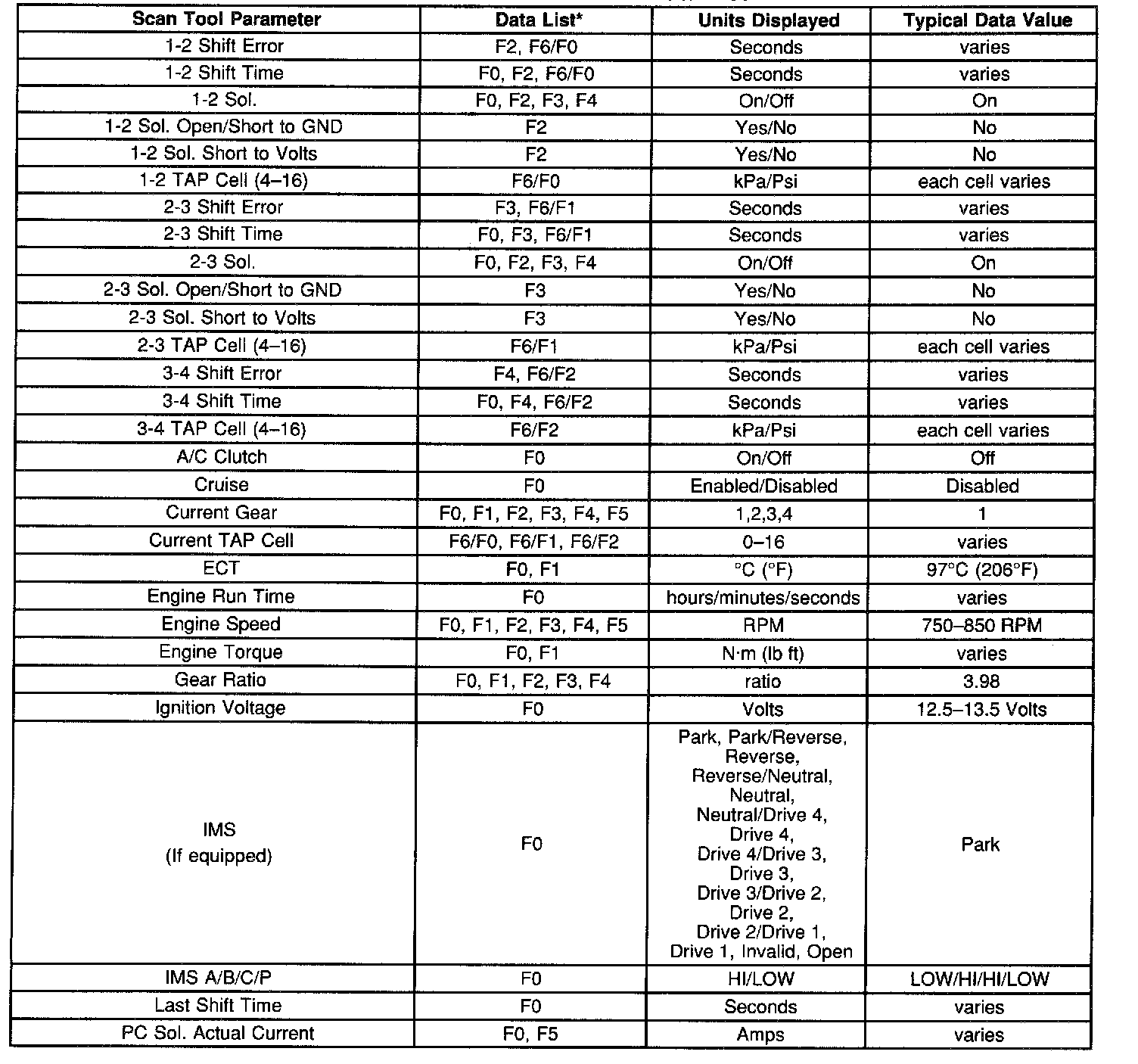 Only the parameters listed below are used for diagnosing. If a scan tool displays other parameters, the values are not recommended by General Motors for use in diagnosis. Scan tool values below were recorded under the following conditions: