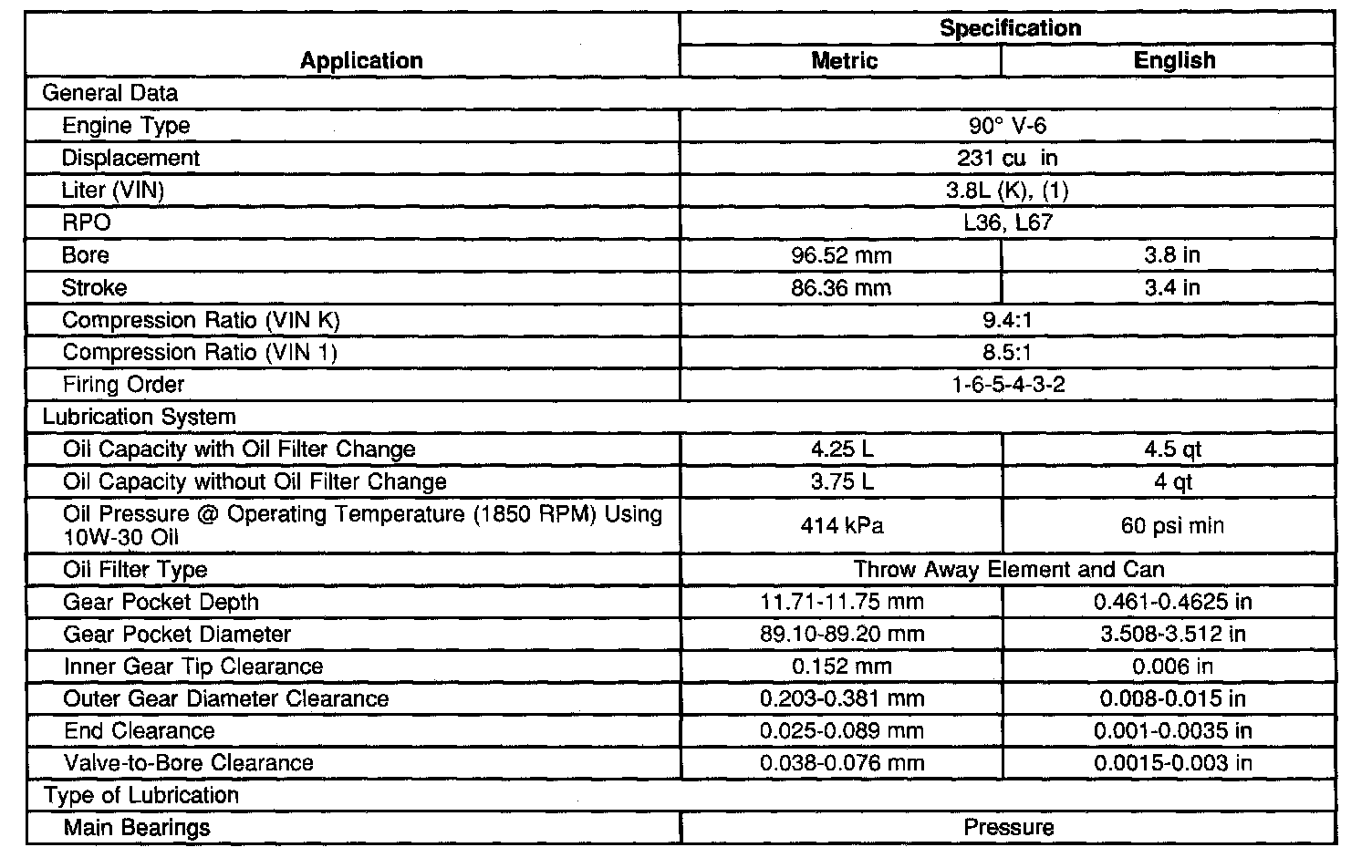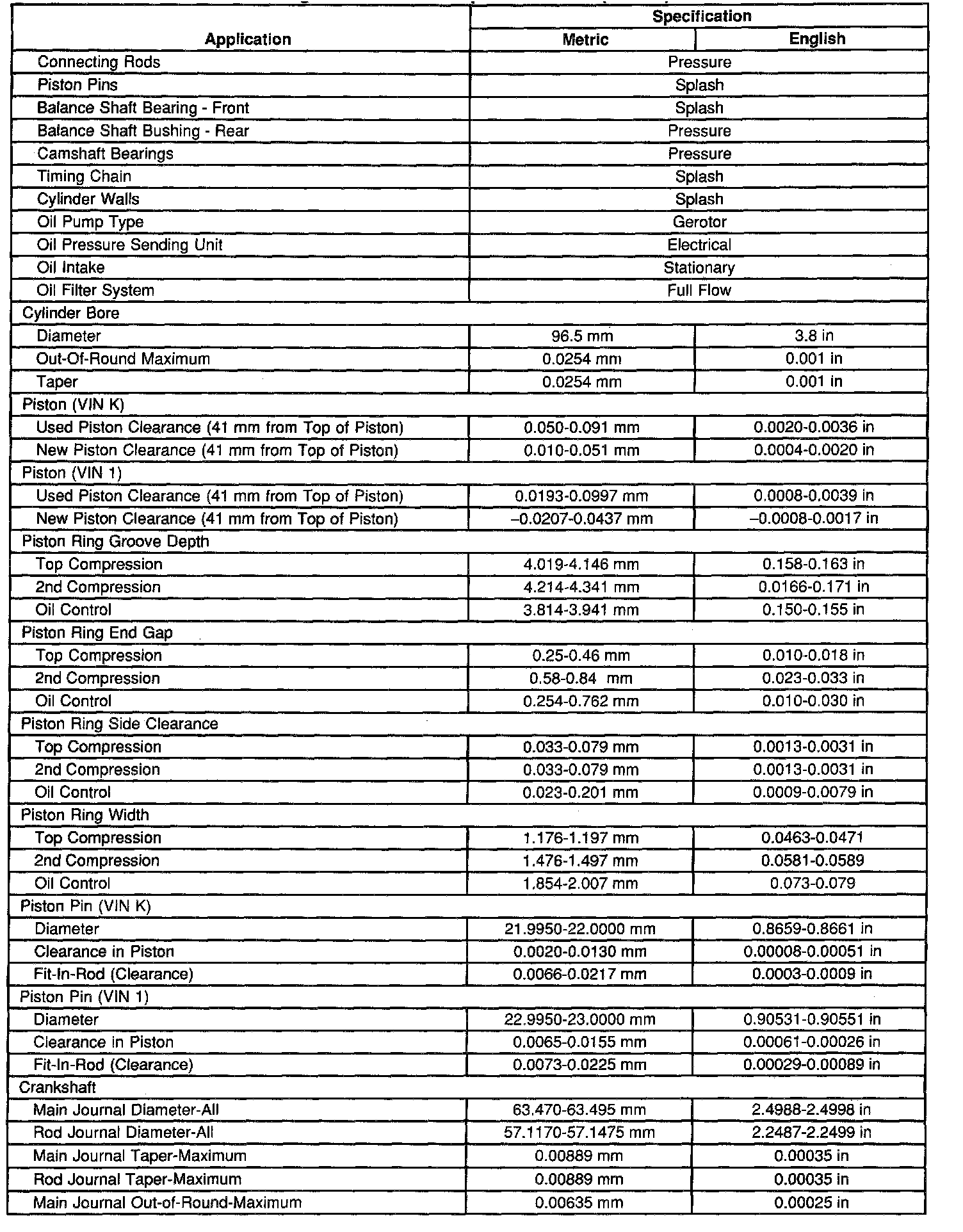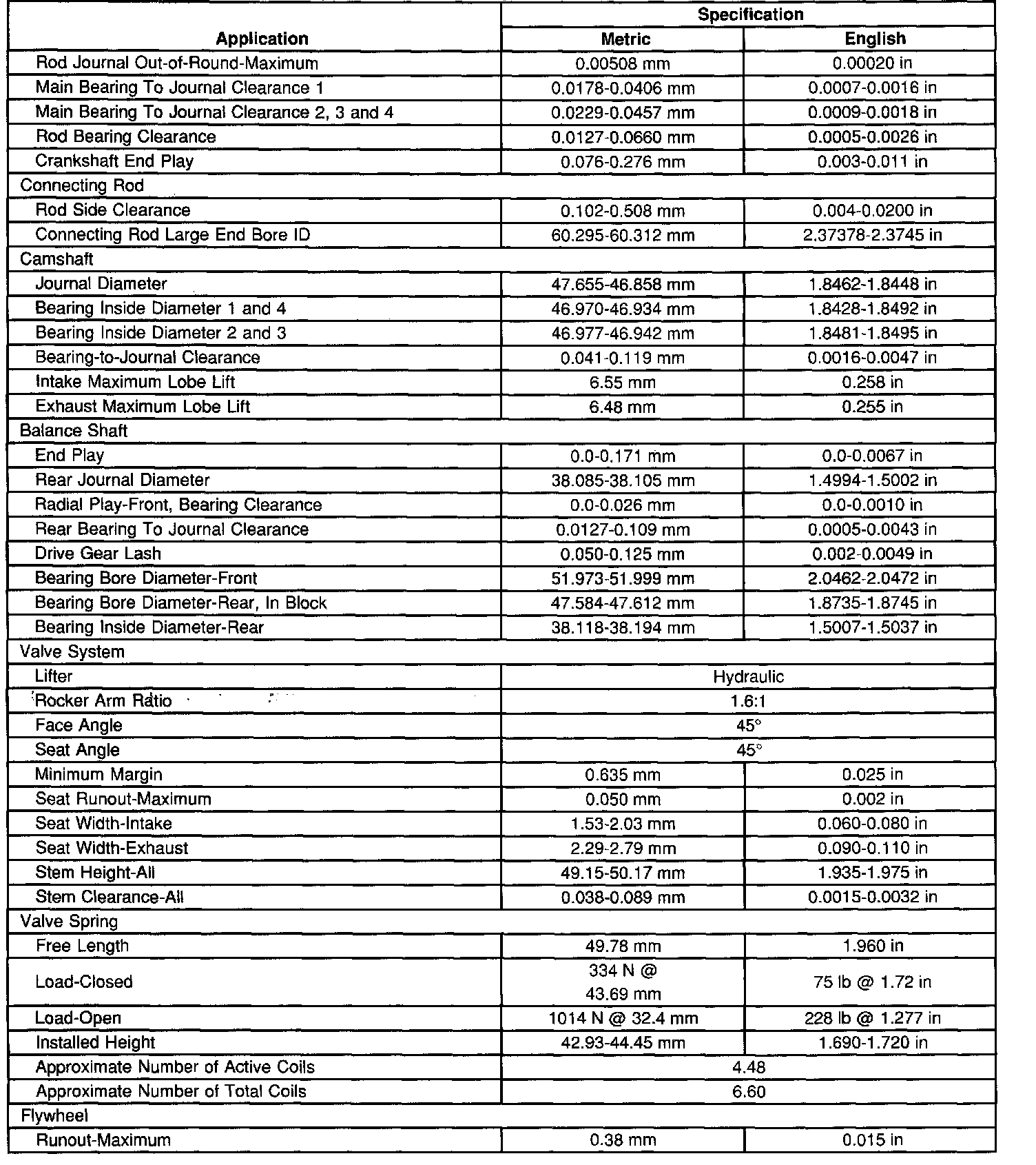 Engine Mechanical Specifications