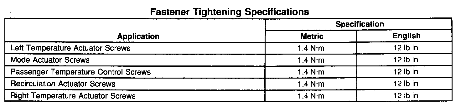 Fastener Tightening Specifications: