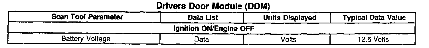 Scan Tool Data List - Drivers Door Module (DDM)
