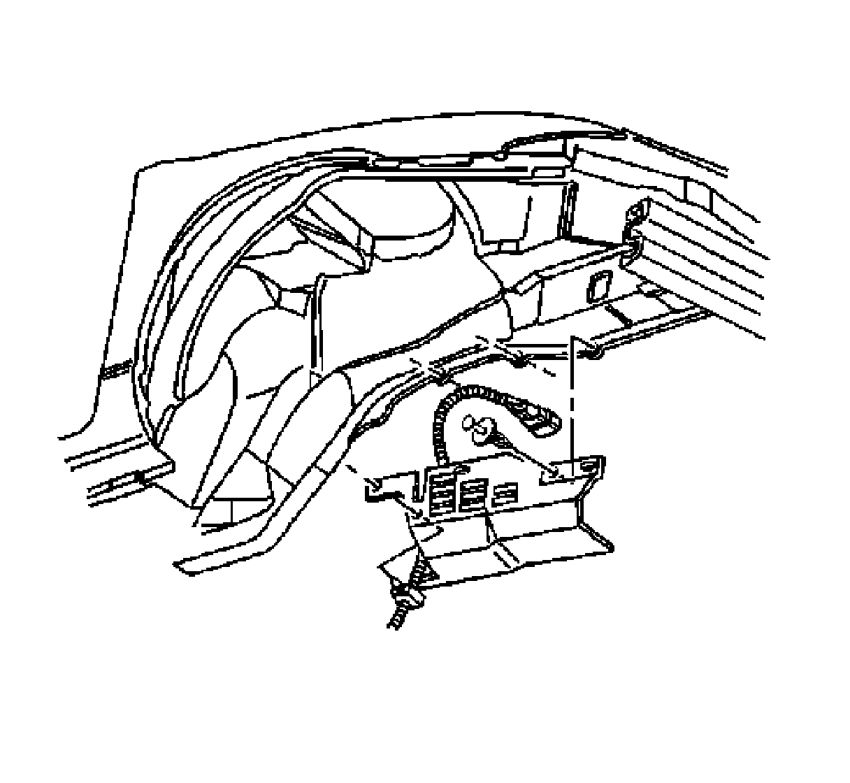1. Install the engine splash shield to the lower flange of the engine compartment side rail.