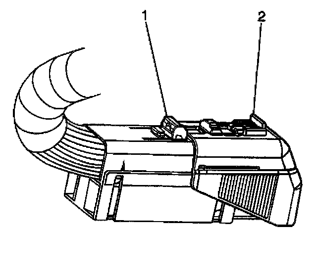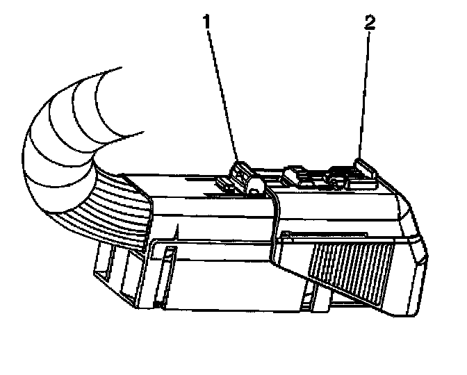 5. Push down lock tab (1) and then move sliding connector cover (2) back in the home position to lock.