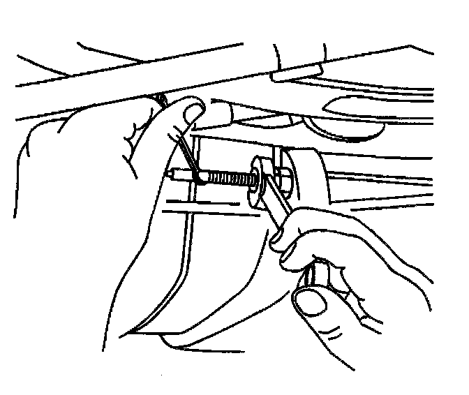 6. Connect the park brake cable return spring to the park brake actuator and bracket at the rear wheel.