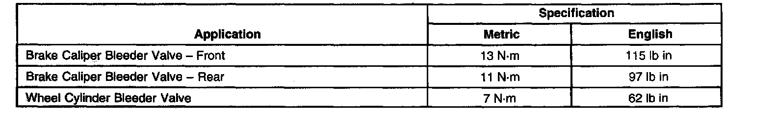Brake Component Specifications