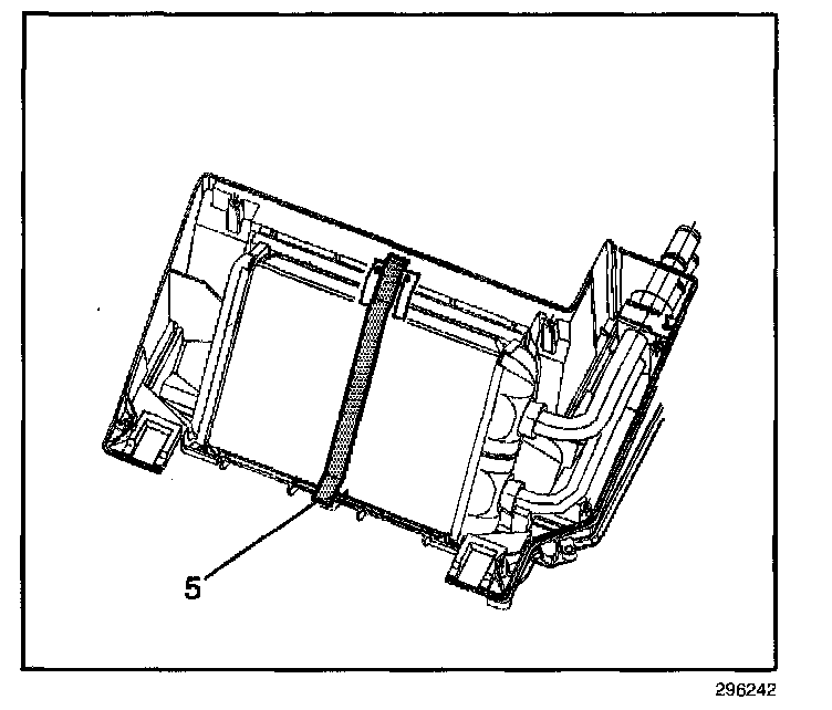11. Remove and discard the heater core outer seal (5) from the heater core.