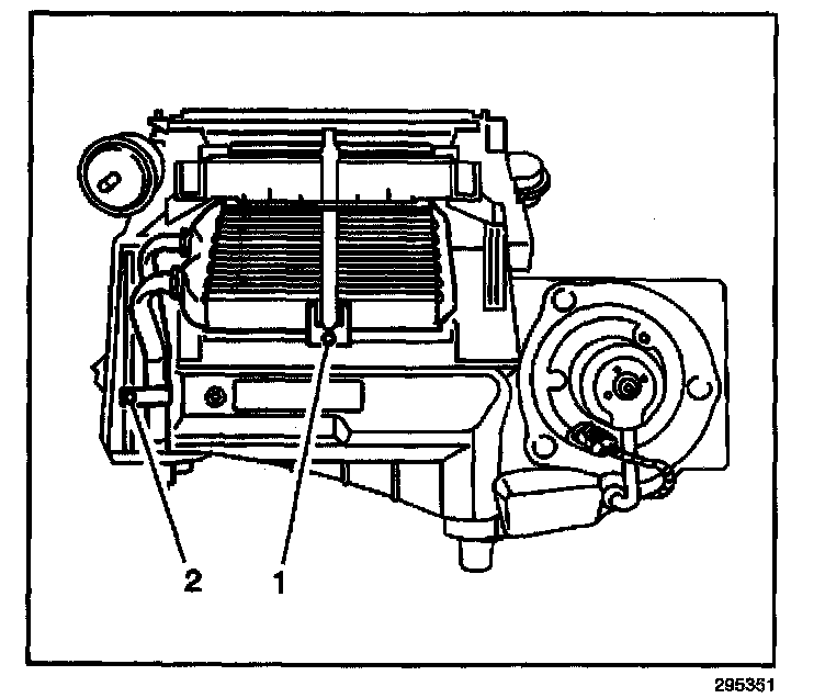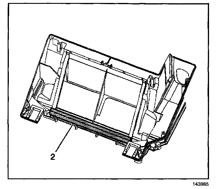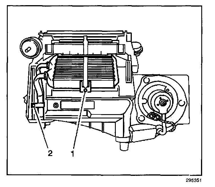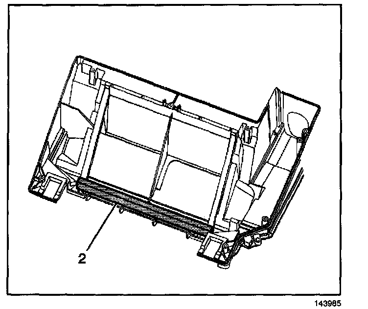 2. Install the heater core upper seal (2) from the HVAC lower case.
