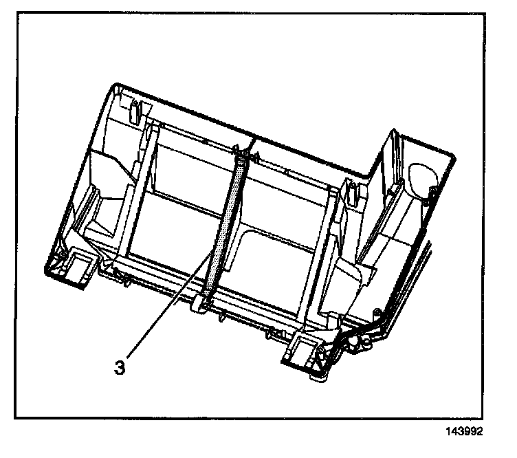 17. Remove and discard the heater core center seal (3) from the HVAC case.