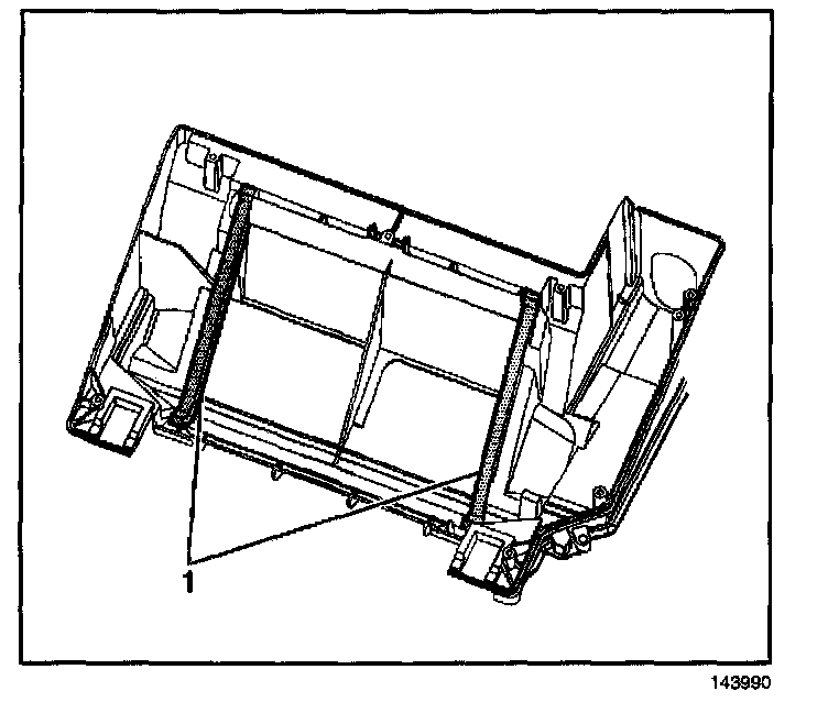1. Install the heater core side seals (1) from the HVAC lower case.