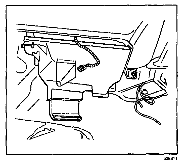 IMPORTANT: Position the heater core outlet cover downward and rearward in order to disconnect the cover from the rear area floor duct assembly.